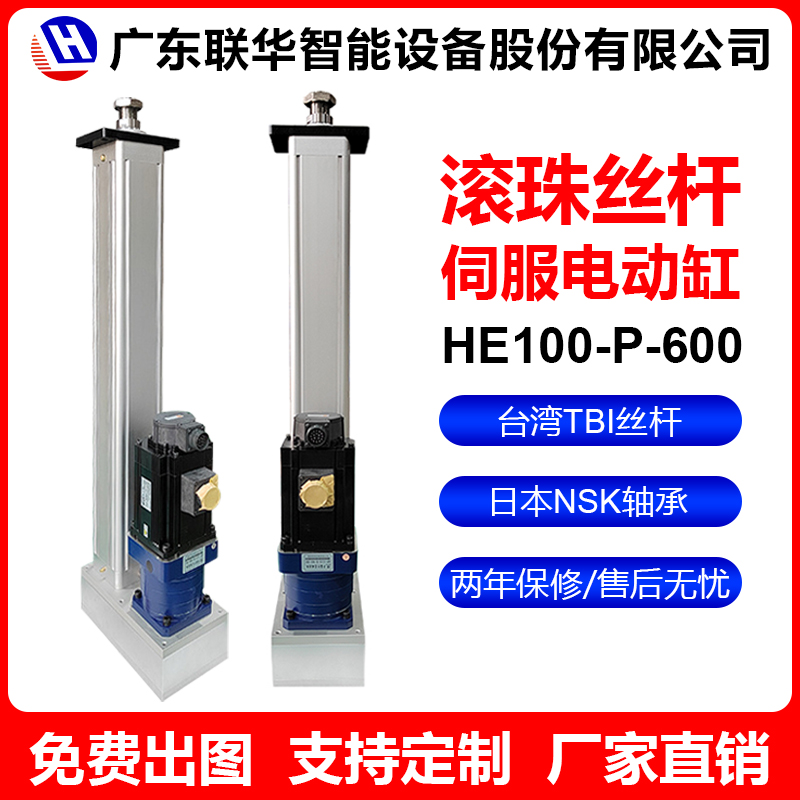 直连折返伺服电动缸HE100重载1吨行程600mm伺服电缸伺服电机厂家